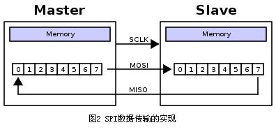 這是通過移位寄存器來實現(xiàn)的。如圖2所示,主機和從機各有一個移位寄存器,且二者連接成環(huán)。隨著時鐘脈沖,數(shù)據(jù)按照從高位到低位的方式依次移出主機寄存器和從機寄存器,并且依次移入從機寄存器和主機寄存器。當寄存器中的內容全部移出時,相當于完成了兩個寄存器內容的交換。